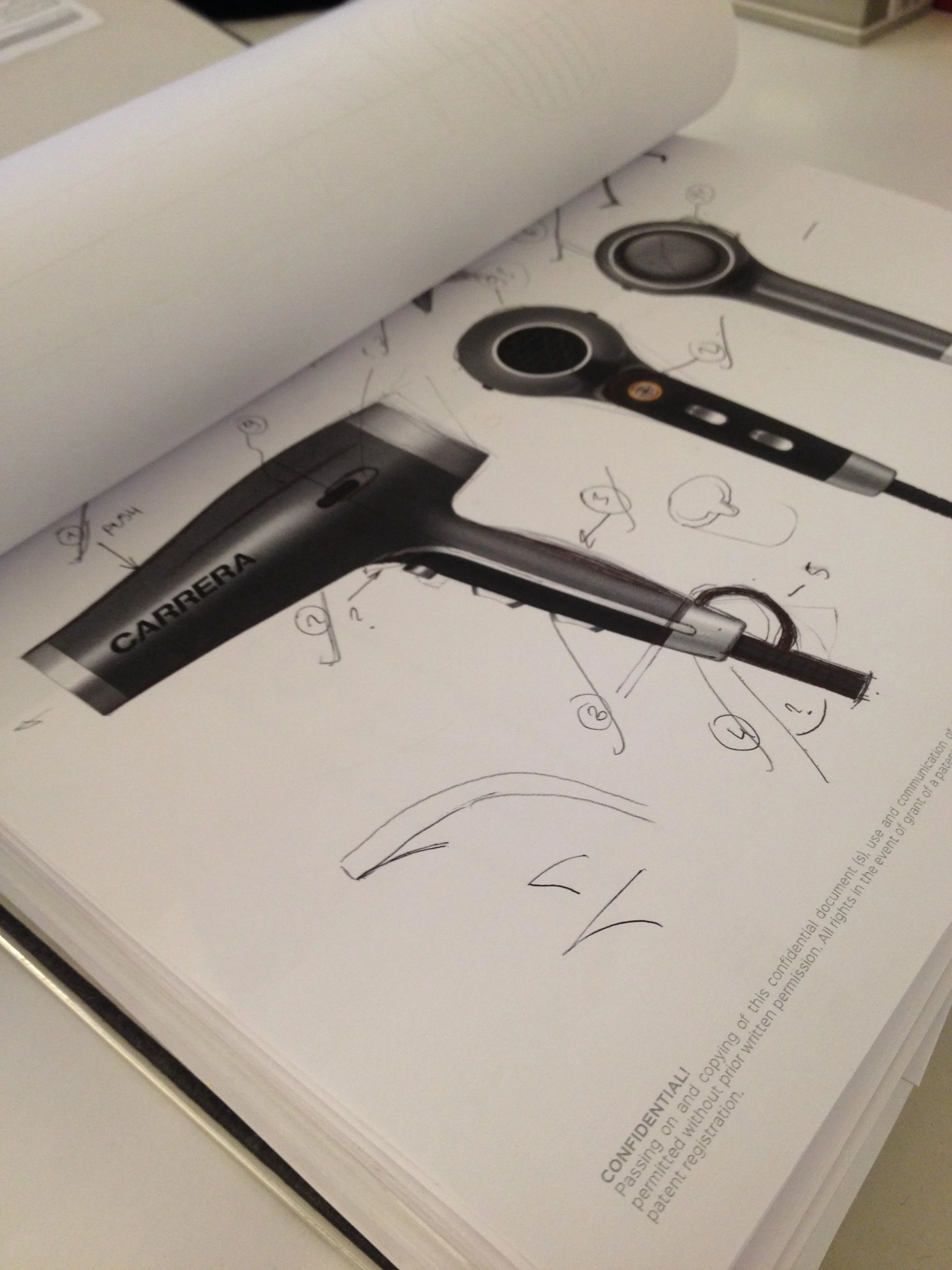 The CARRERA project showcases a complete design process, from the initial concept to the final mass-produced product line. It began with the challenge of developing a competitive beard trimmer for the European market, which evolved through team collaboration in sketch development and user feedback from hair salons.